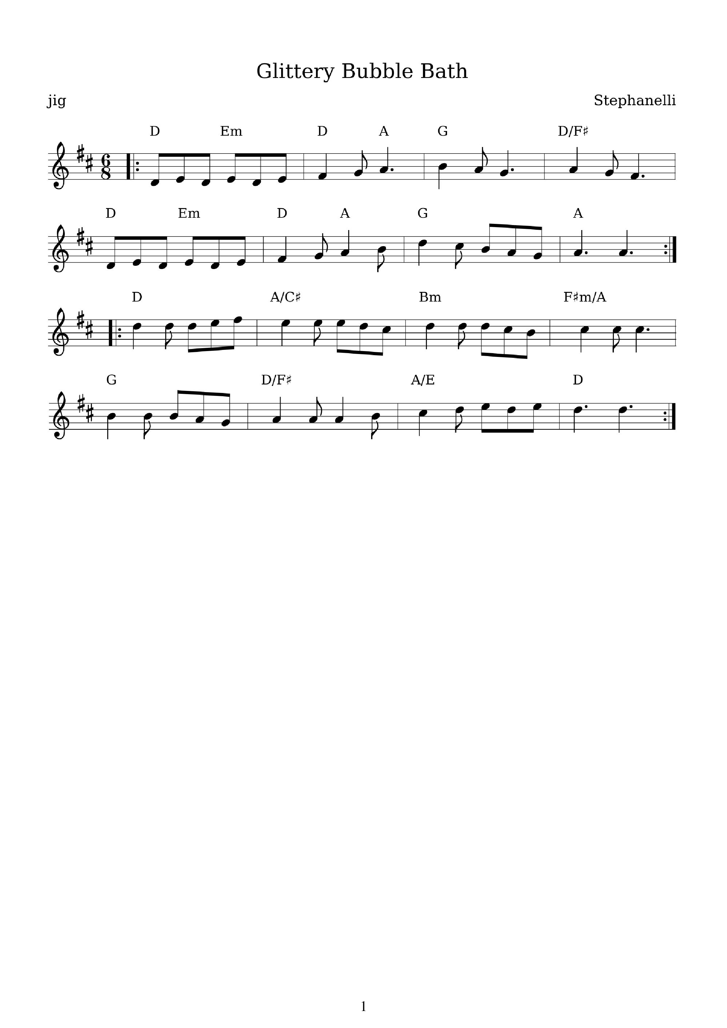 "D" DED "Em" EDE | "D" F2 G "A" A2 B | "G" d2 c BAG | "A" A3 A3 :|